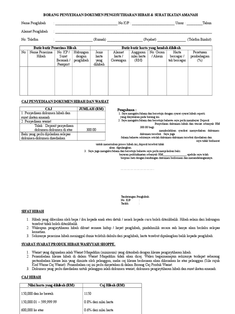 Borang Penyediaan Dokumen Pengisytiharan Hibah Pdf